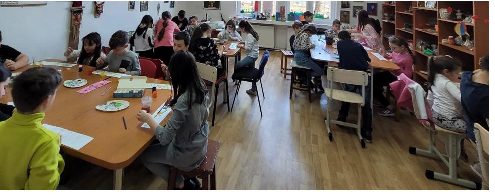 În cadrul atelierului copiii au ocazia să învețe diferite tehnici de pictură: pe lemn, sticlă, piatră precum și decorarea diferitelor obiecte. Vor colabora pentru finisarea produselor, vor învăța să se respecte reciproc,atât în timpul activității, cât și în afara ei.